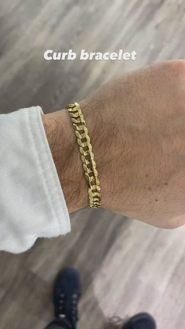Le bracelet Flat Concave Curb est fabriqué en or jaune italien 10K de la plus haute qualité. Voici les dimensions du bracelet :