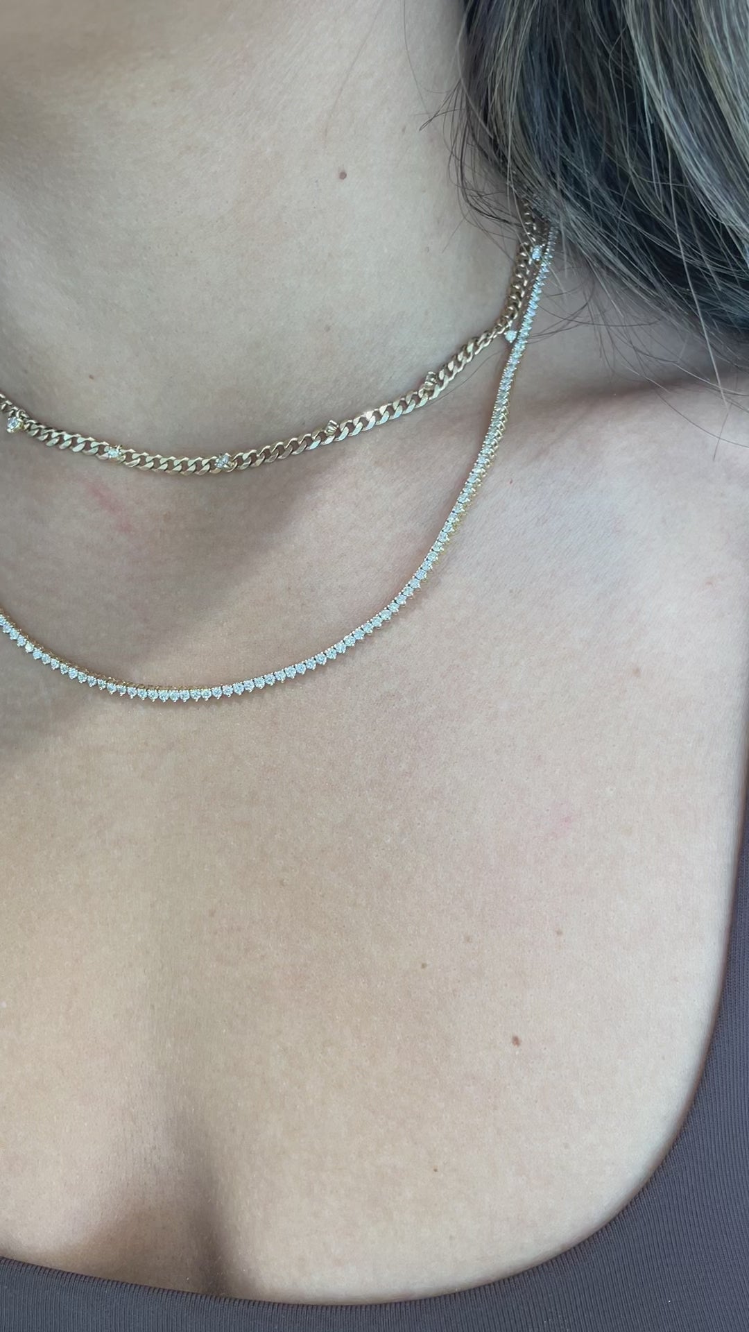 Le collier Tennis à trois branches en diamant naturel est disponible en or blanc, jaune et rose.