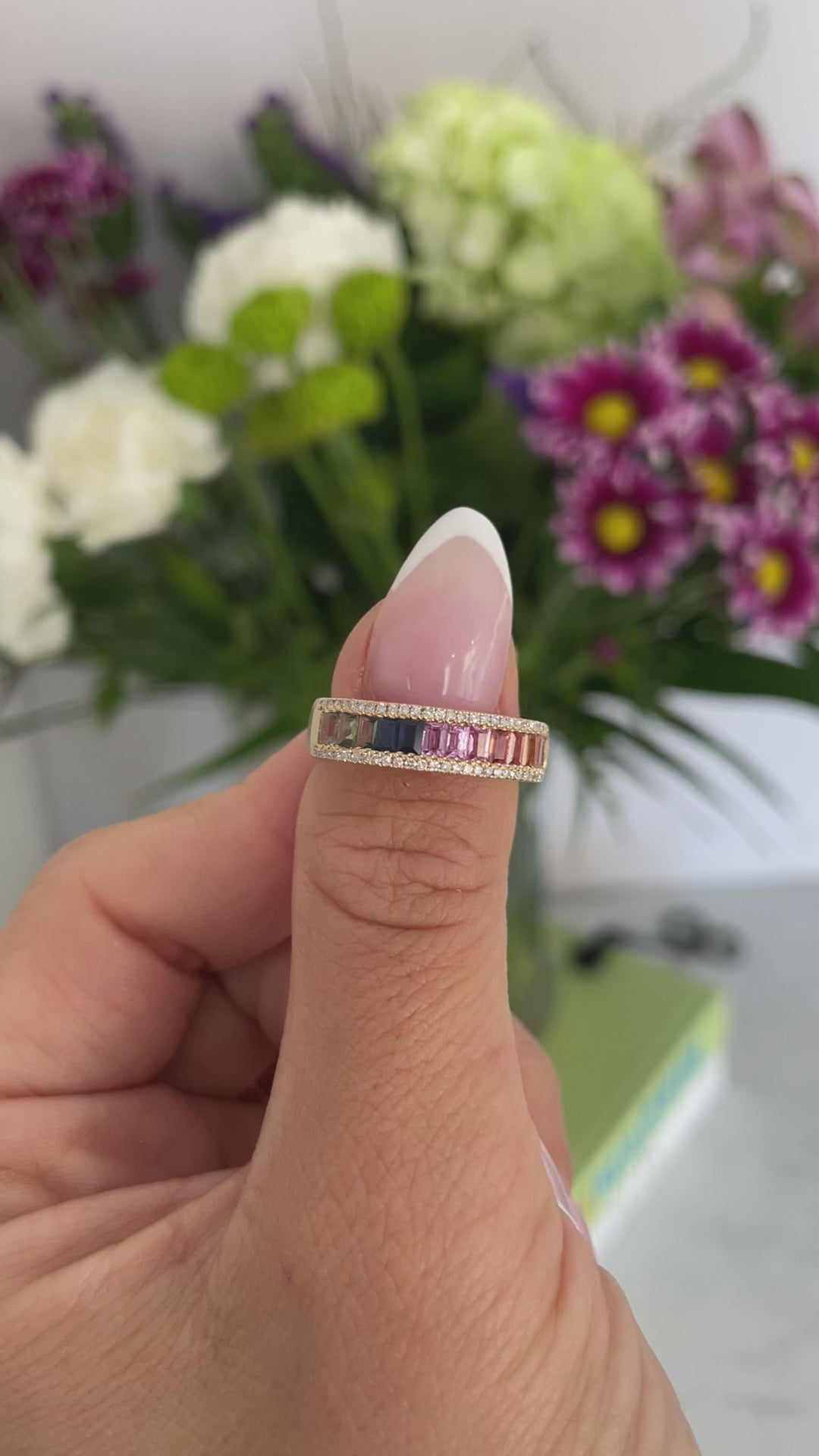 The Colourful Baguette Gemstone Ring is available in White, Yellow and Rose Gold.