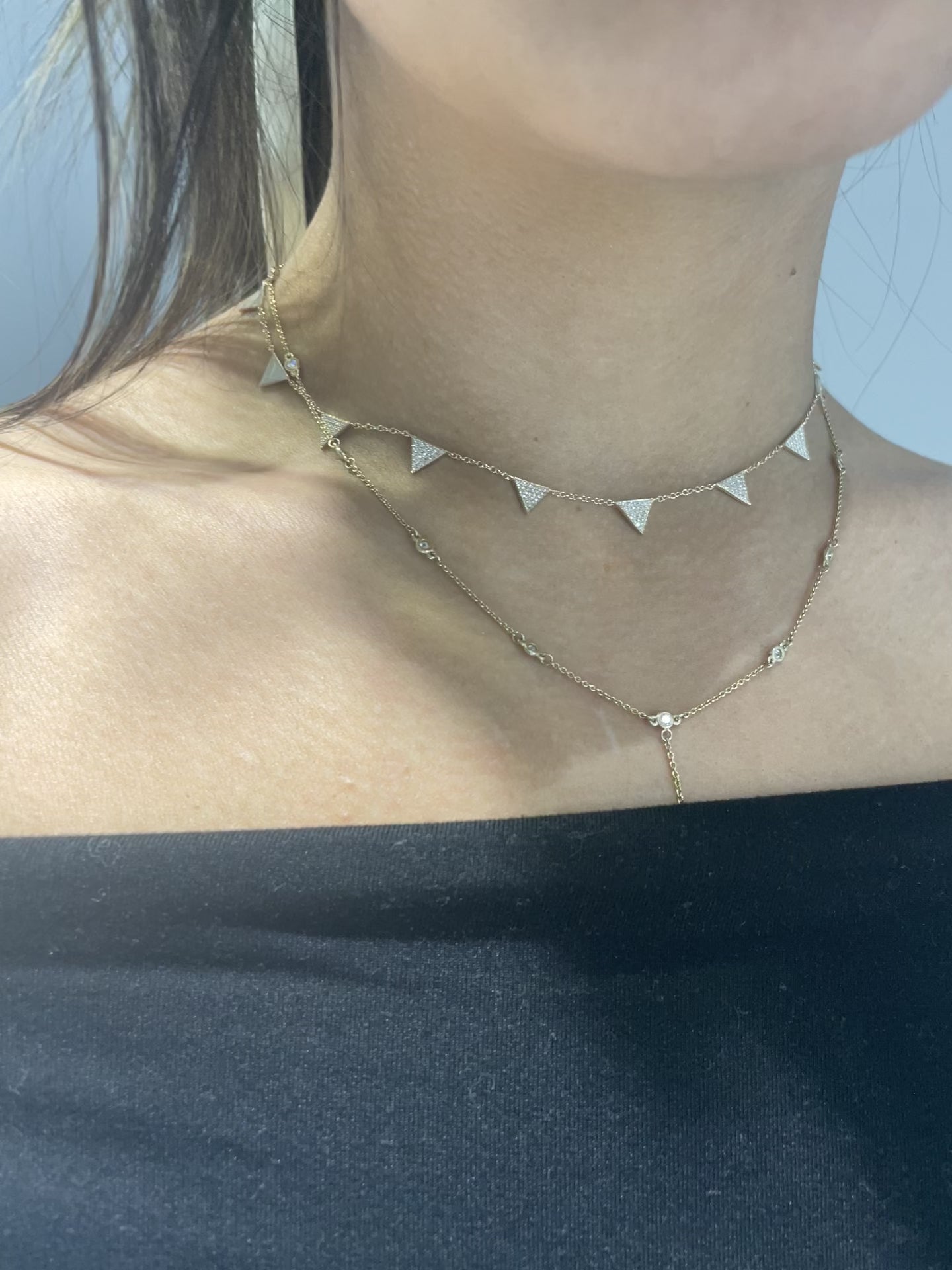 The Diamond Triangle Choker is available in White, Yellow and Rose Gold.