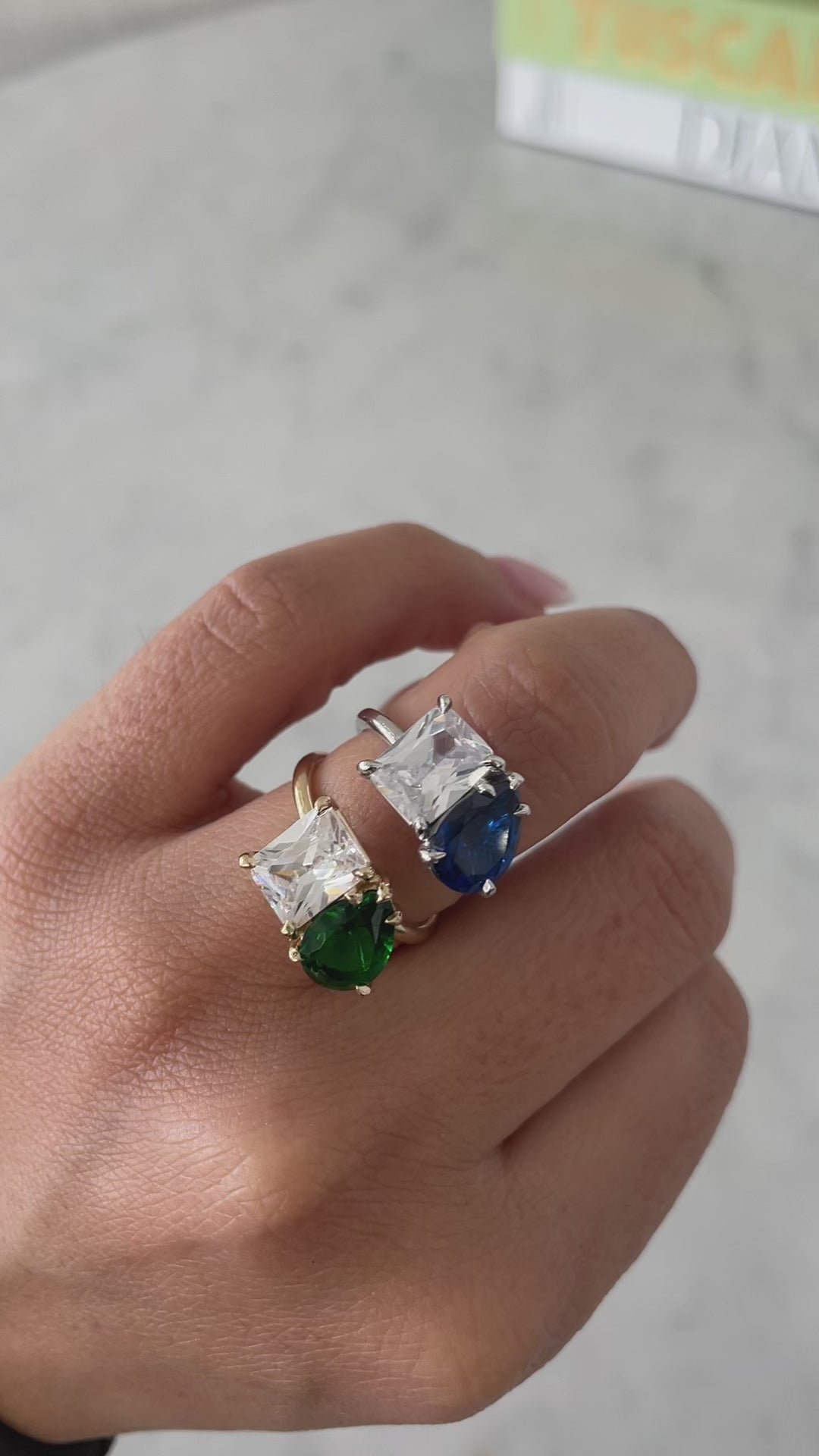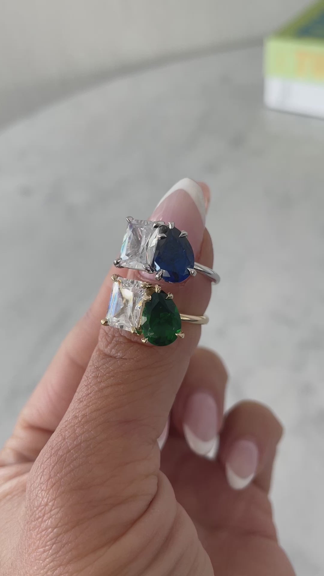 Green Emerald Pear and Emerald Shape Toi et Moi Ring